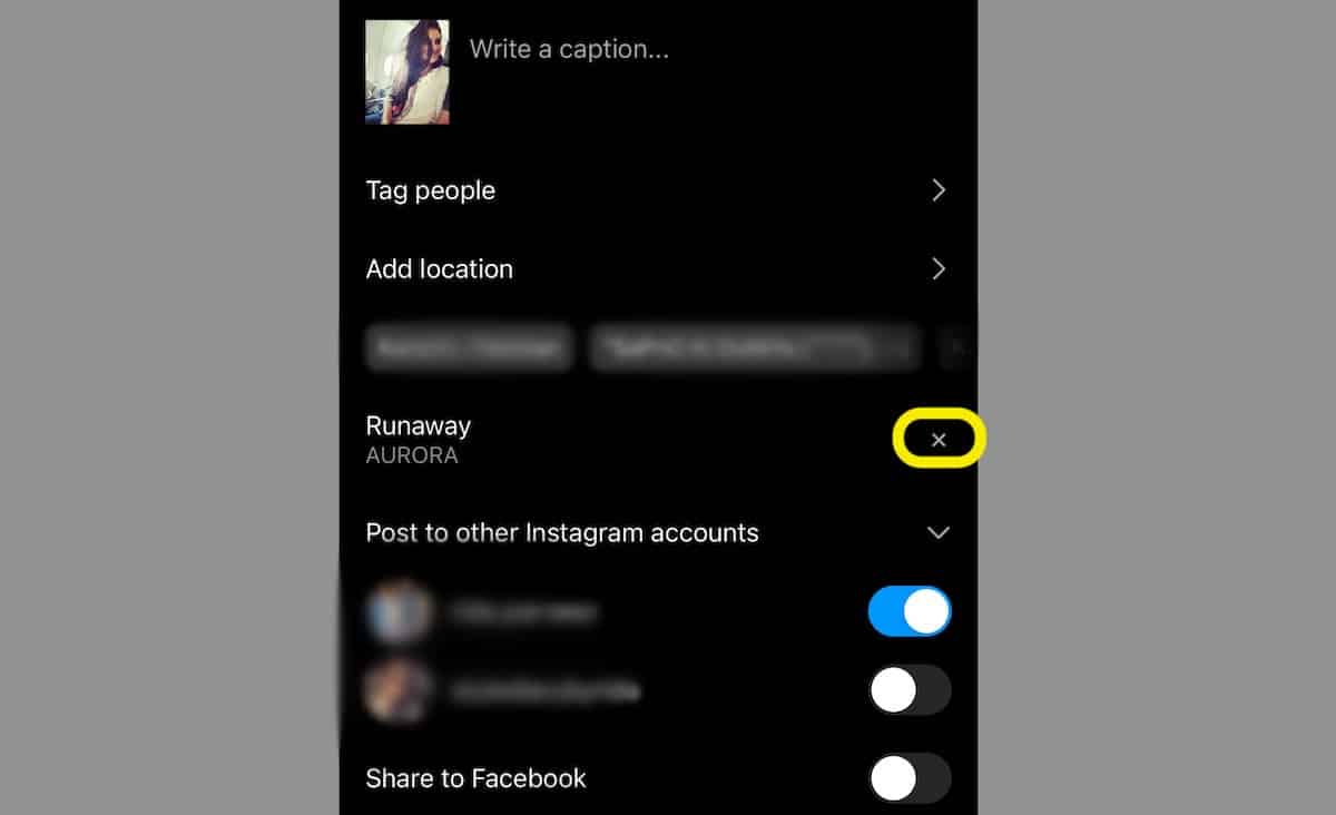 - Jeśli chcesz usunąć dźwięk lub go zmienić, po prostu dotknij ikony „x” i wybierz nowy utwór.