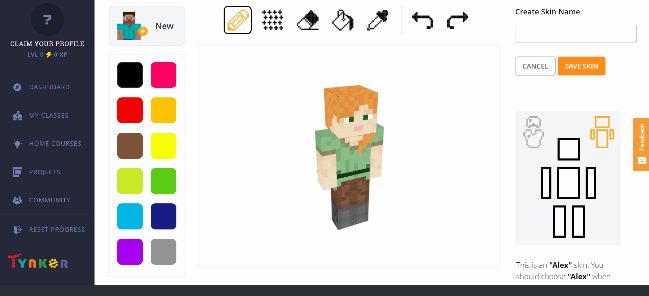 Dzięki Minecraft Skin Editor firmy Tynker możesz wybrać wstępnie dostosowaną skórkę wraz z rysunkiem, jak chcesz. To jest edytor skórek 3D dla Minecrafta. Na tej stronie znajduje się 25 gotowych skórek, z których możesz korzystać bezpłatnie. Oprócz tego możesz je również edytować. Ten program umożliwia edycję istniejących skórek Twojej nazwy użytkownika lub galerii Minecraft, a także utworzenie nowej od zera. Możesz przesłać skórkę bezpośrednio do Minecrafta lub pobrać ją na swój komputer. Możesz także tworzyć skórki dla Minectaft PE za pomocą edytora skórek dla kieszonkowej edycji Minecrafta.