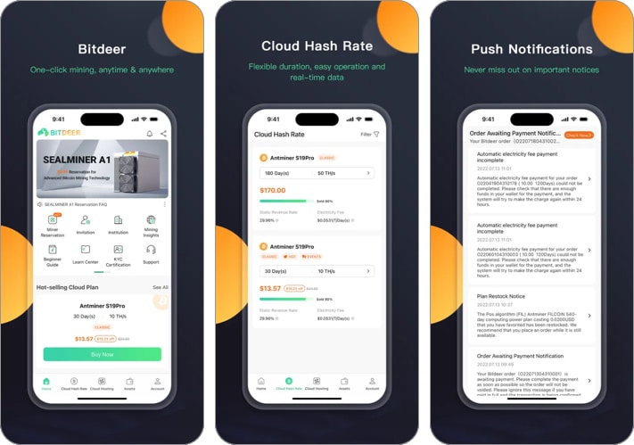 Bitdeer został zaprojektowany, aby ułatwić użytkownikom wydobywanie kryptowalut na smartfonach. Platforma obsługuje hashrate w chmurze (wydobywanie w chmurze), MinerPlus i Datacenter. Aplikacja eliminuje zapotrzebowanie na dużą ilość energii elektrycznej i innej mocy obliczeniowej. Zapewnia także całodobową pomoc. Dzięki Bitdeer możesz wydobywać ponad dziesięć monet, w tym Bitcoin, i otrzymywać płatności bezpośrednio w swoim cyfrowym portfelu.