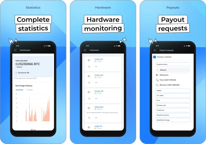 Kryptex to aplikacja dla użytkowników iPhone'a, która umożliwia płynne zarządzanie operacjami wydobywania kryptowalut dzięki przyjaznemu dla użytkownika interfejsowi. Ta aplikacja działa na systemach Windows i iPhone i płaci użytkownikom w Bitcoinach lub walucie fiducjarnej, którą można wypłacić na kartę bankową lub portfel. Minimalna kwota wypłaty wynosi 0,5 dolara.