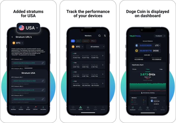 W przeciwieństwie do innych aplikacji wydobywczych, Trustpool to wyjątkowa aplikacja, która pozwala użytkownikom wydobywać wyłącznie tokeny kryptograficzne oraz monitorować depozyty i zyski ze stałą prowizją w wysokości 1%. Aplikacja obsługuje monety kryptograficzne, takie jak BTC, Litecoin, DASH i BCH.