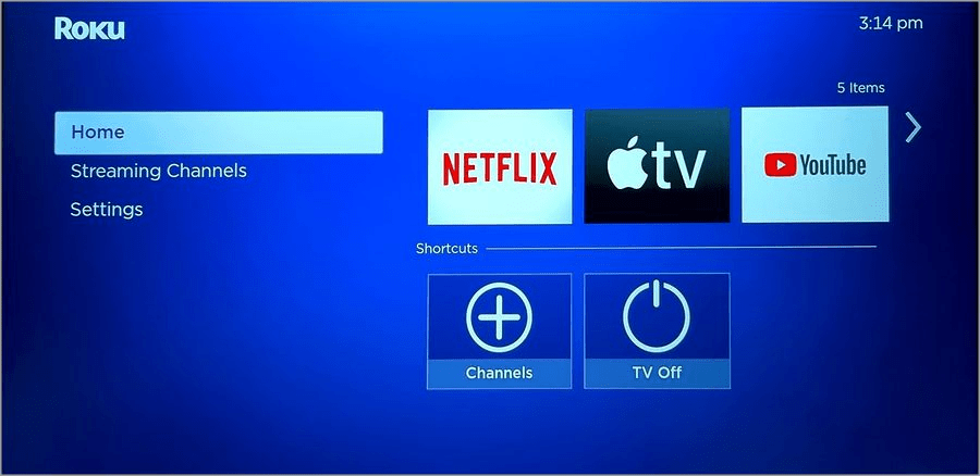 Krok 1:Wybierz opcję Kanały strumieniowe z menu głównego Roku.