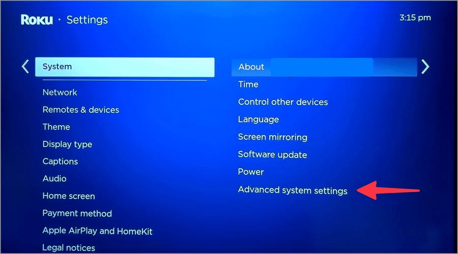 Krok 1:Otwórz Ustawienia Roku i wybierz System.