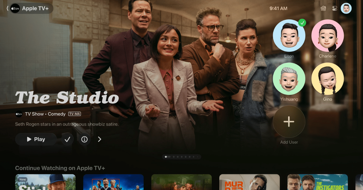 tvOS 26 usprawnia zarządzanie profilami, automatycznie wyświetlając opcje profilu po wybudzeniu urządzenia. Dzięki temu użytkownicy mogą od razu przejść do spersonalizowanych list odtwarzania, rekomendacji i list odtwarzania Apple Music bez dodatkowej nawigacji. Nowy interfejs API dla programistów łączy także dane logowania do aplikacji z identyfikatorami Apple ID, upraszczając logowanie do usług przesyłania strumieniowego podczas konfiguracji.