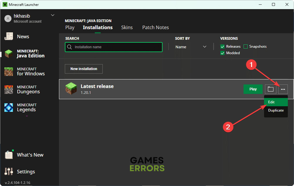 - Otwórz Minecraft Launcher i kliknij problematyczną grę Minecraft.