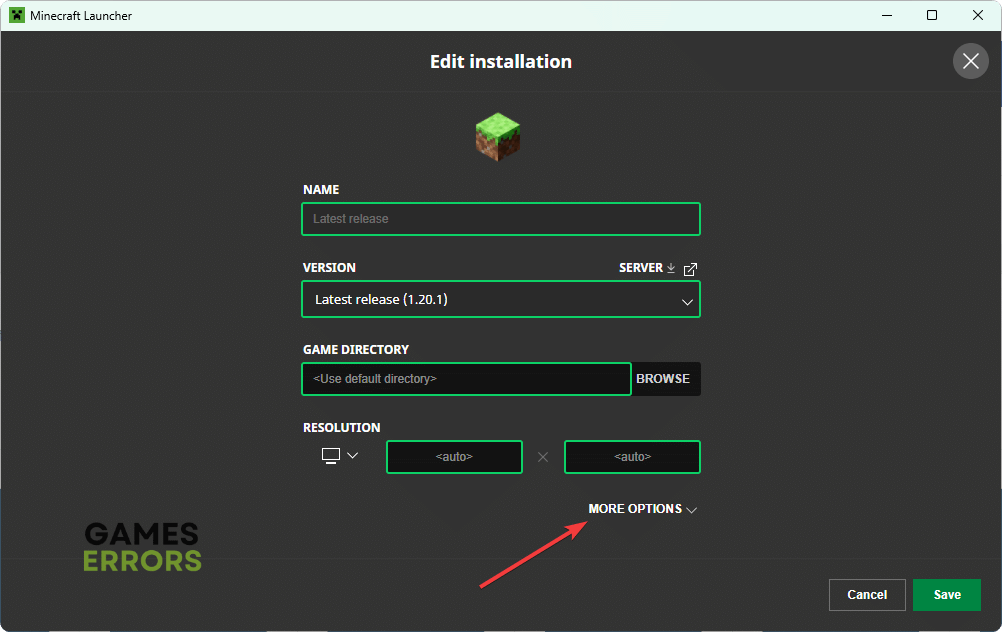 - Usuń plik wykonywalny Java, aby korzystał z domyślnego pliku wykonywalnego dołączonego do gry, i kliknij Zapisz.