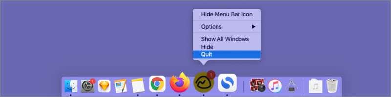 Czy używasz aplikacji do edycji lub aplikacji do multimediów i próbujesz odczytać/zapisać dysk? Jeśli tak, zamknij takie aplikacje. Możeszkliknij prawym przyciskiem myszy ikonę aplikacjiz Docka i wybierzZrezygnować. Jeśli nie wiesz, które aplikacje zamknąć, zapisz swoją pracę i zamknij wszystkie aplikacje.