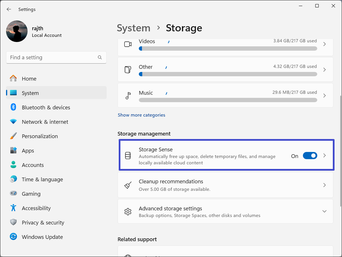 Aby automatycznie uruchomić funkcję Storage Sense na komputerze z systemem Windows 11, zacznij od jej włączenia. Oto jak: