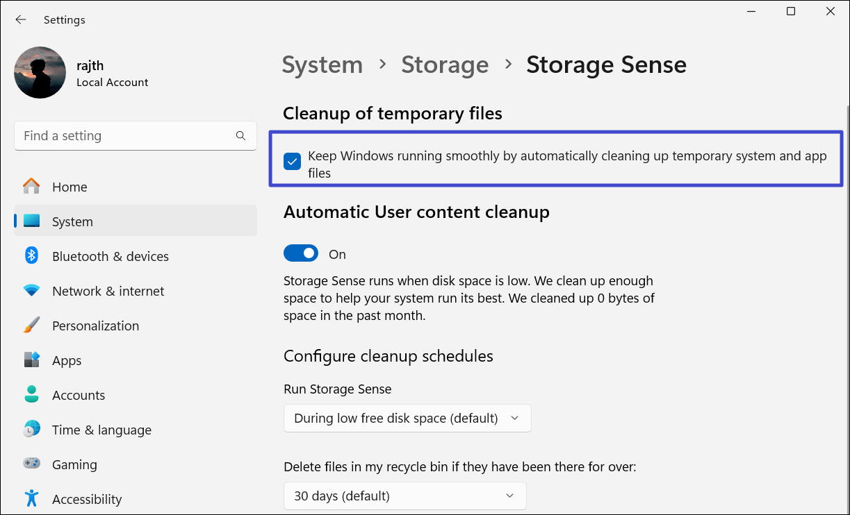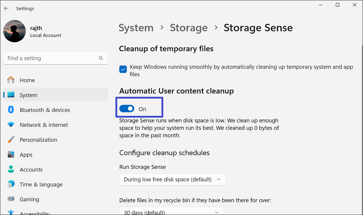 Po włączeniu funkcja Storage Sense będzie działać automatycznie z ustawieniami domyślnymi.