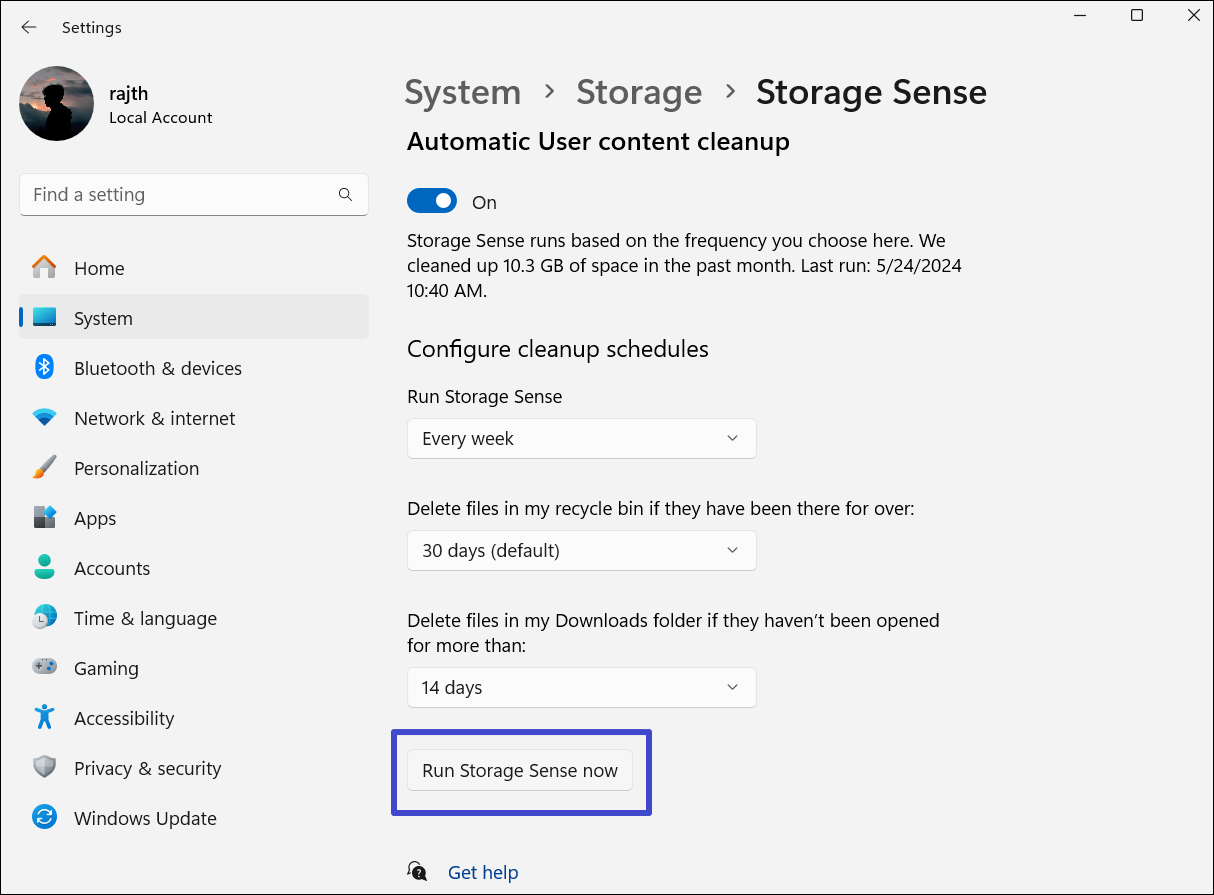 Po wykonaniu tych kroków funkcja Storage Sense automatycznie zwolni miejsce na dysku, gdy będzie go mało, w zależności od ustawień.