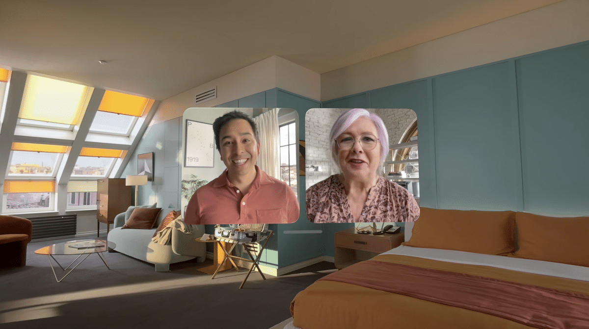 FaceTime w systemie VisionOS będzie obsługiwał tryb środowiskowy, który umożliwi korzystanie z tła immservie podczas rozmów, a wszyscy uczestnicy połączenia będą widzieć to samo tło.