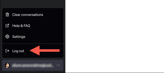 Jeśli nie ma nic złego w serwerach OpenAI, spróbuj wylogować się i zalogować ponownie na swoje konto OpenAI. Aby to zrobić: