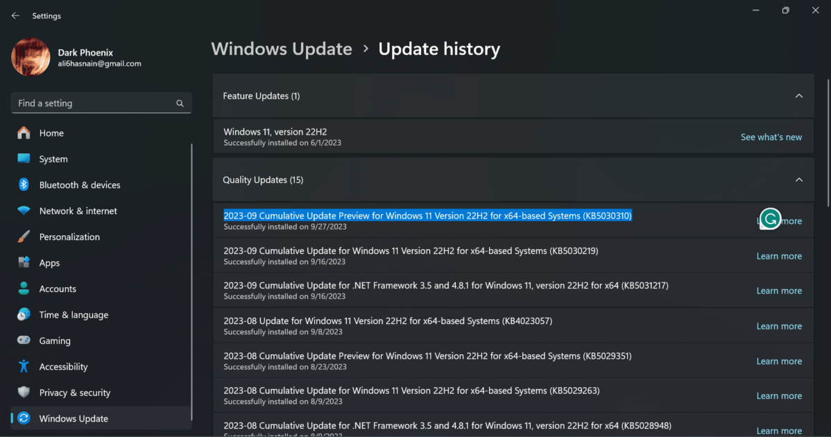 Podczas wydarzenia Microsoft powiedział również, że do systemu Windows 11 w wersji 22H2 pojawi się kolejna aktualizacja, która tak się składa, że będzie zawierać większość (jeśli nie wszystkie) funkcji 23H2. TheKB5030310aktualizacja była dostępna 26 września, co umożliwiło jedynie dodanie kilku nowych funkcji i pozostawiło wersję 22H2.