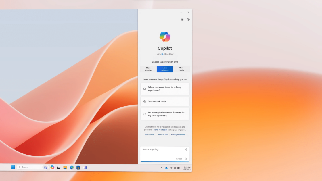 Copilot to nowy asystent oparty na sztucznej inteligencji zintegrowany z systemem Windows 11. Został zaprojektowany, aby pomagać użytkownikom w różnych zadaniach, takich jak pisanie kodu, tworzenie prezentacji i rozwiązywanie problemów. Aby skorzystać z Copilot, użytkownicy mogą po prostu otworzyć pasek boczny Copilot, klikając ikonę Copilot na pasku zadań lub naciskając WIN + C. Po otwarciu paska bocznego użytkownicy mogą wpisać swoje pytania lub prośby, a Copilot zapewni im pomoc.