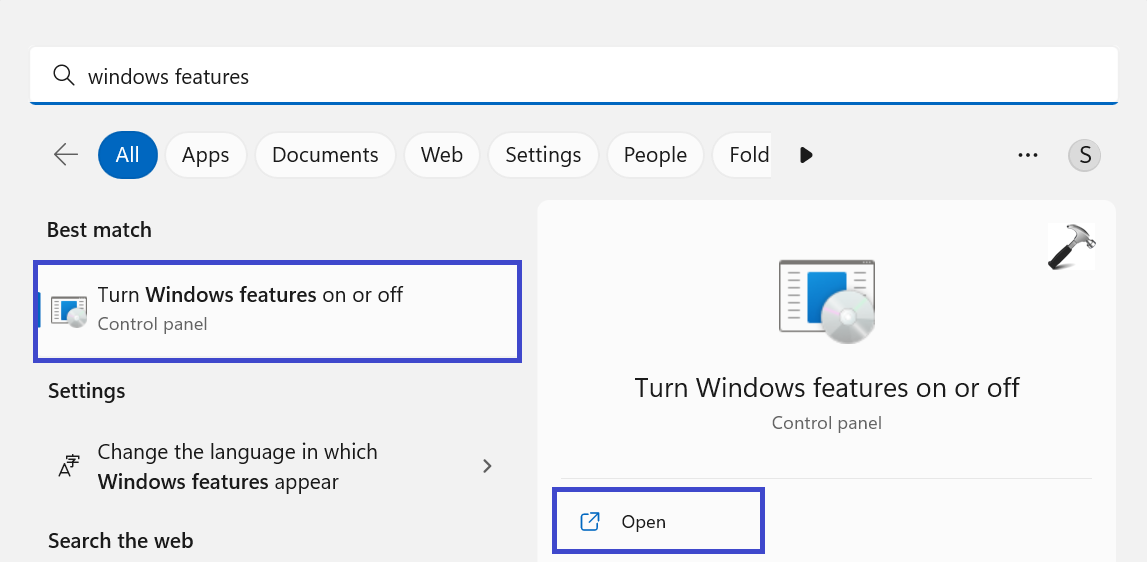 1. Naciśnij klawisz Windows + S i kliknij „Funkcje Windows”.