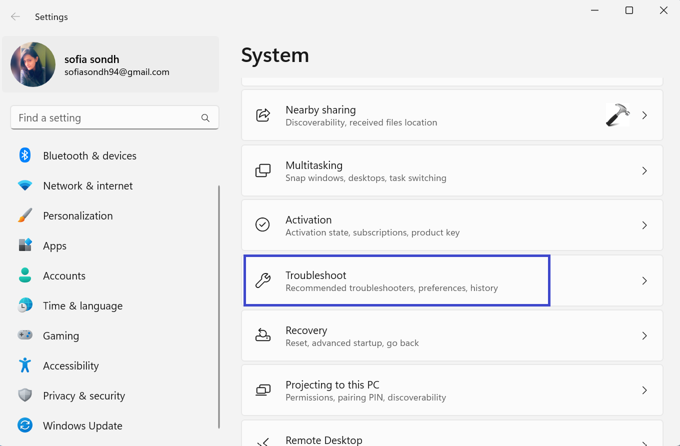 2. Teraz wybierz Rozwiązywanie problemów z prawego panelu.