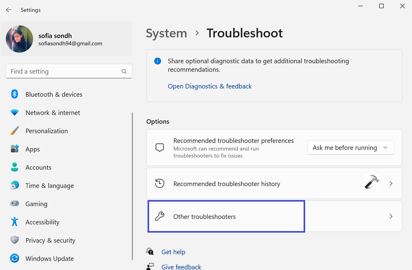 3. Kliknij opcję „Inne narzędzia do rozwiązywania problemów”.