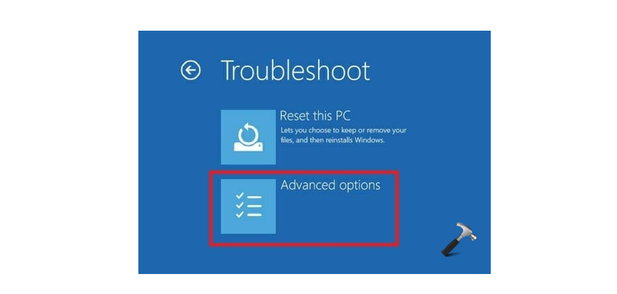 6. Wybierz opcję Rozwiązywanie problemów, a następnie kliknij Opcje zaawansowane.
