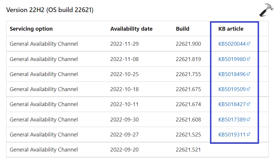 1. Sprawdź witrynę historii aktualizacji firmy Microsoft, aby znaleźć numer kodu aktualizacji.