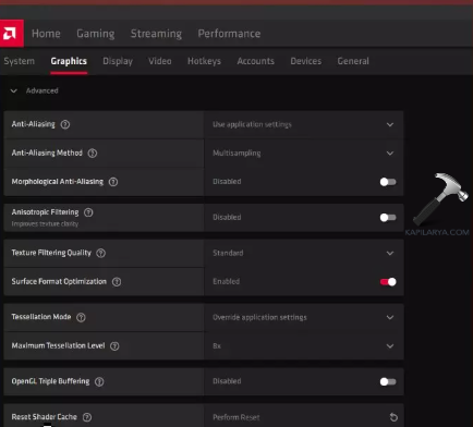 Krok 2-Następnie przejdź do Grafika> Zaawansowane> Resetuj pamięć podręczną modułu cieniującego.
