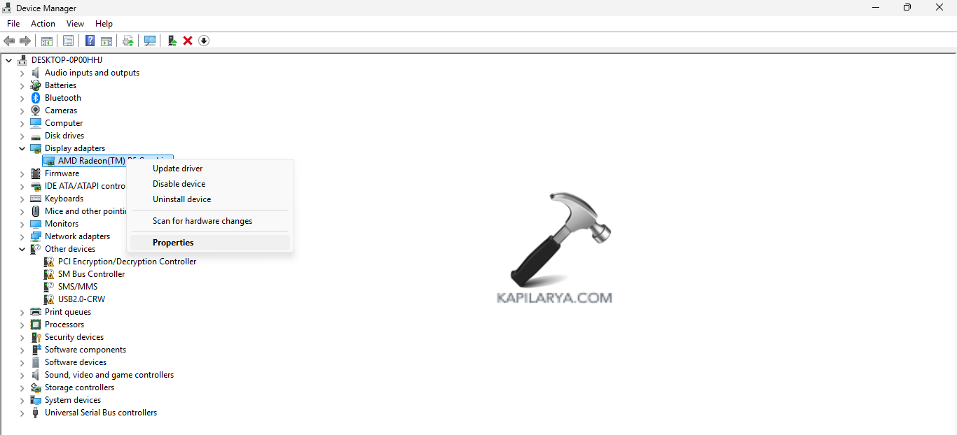 Krok 2-Następnie kliknij prawym przyciskiem myszy sterownik karty graficznej i otwórz Właściwości.