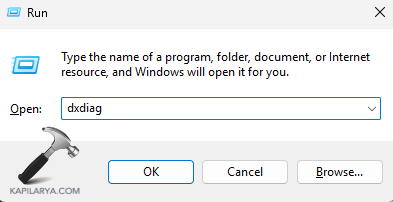 Krok 2-Teraz wpisz polecenie podane poniżej i kliknij Enter. Otworzy się narzędzie diagnostyczne DirectX.