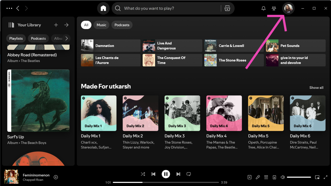 Krok 1:Uruchom aplikację Spotify i dotknij swojegozdjęcie profiloweu góry ekranu.