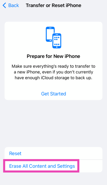 Krok 3:UderzyćUsuń całą zawartość i ustawienia.