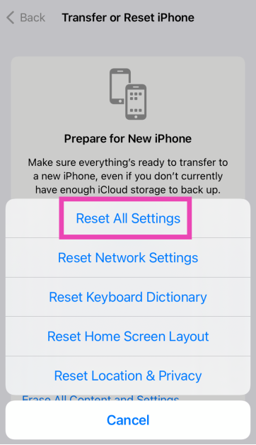 Krok 4:WybieraćZresetuj wszystkie ustawienia. Wprowadźhasłoaby potwierdzić swoją decyzję.
