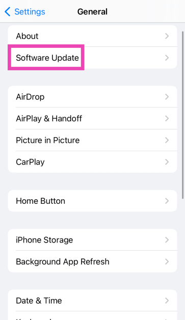 Krok 3:WybieraćAktualizacja oprogramowania.