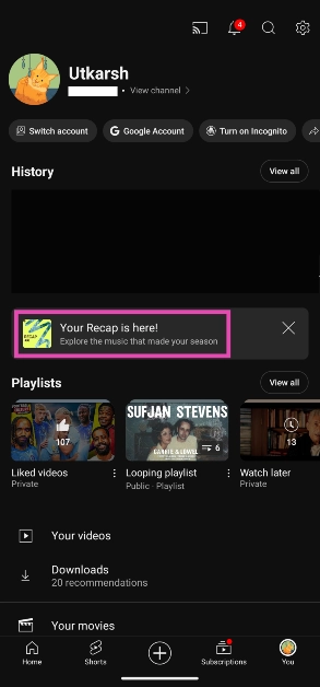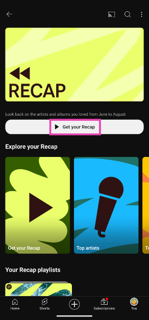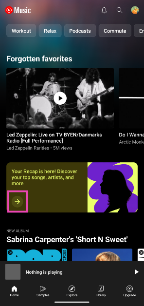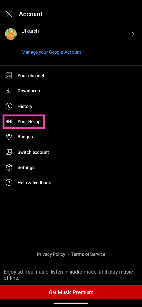 Zaletą YouTube Music Recap jest to, że uwzględnia również Twoją aktywność związaną ze słuchaniem muzyki w głównej aplikacji YouTube. Jeśli nie korzystasz z aplikacji YouTube Music, nadal możesz wyświetlić swoje podsumowanie. Dostęp do niego można uzyskać również z głównej aplikacji YouTube.