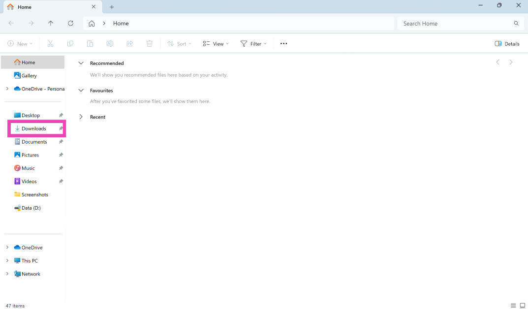 Zmień folder Pobrane za pomocą Eksploratora plików