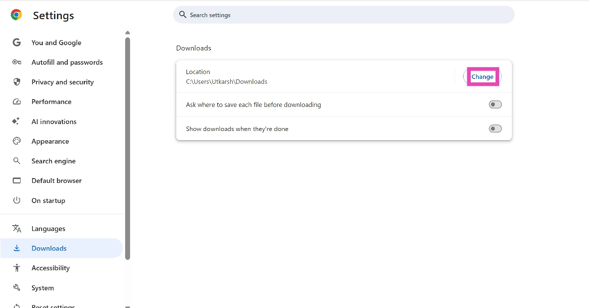 Zmień folder Pobrane za pomocą przeglądarki Google Chrome