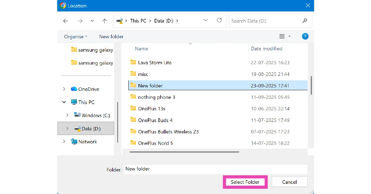 Krok 4:Wybierz preferowany cel podróży i kliknijWybierz Folder.
