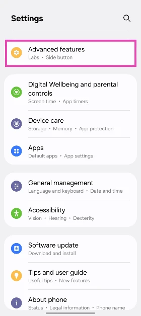 Krok 1:Idź doUstawieniai wybierzZaawansowane funkcje.