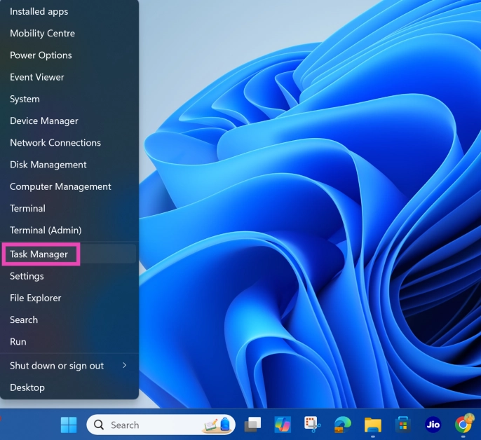Krok 1:Kliknij prawym przyciskiem myszynaIkona Windowsana pasku zadań i wybierz Menedżer zadań.