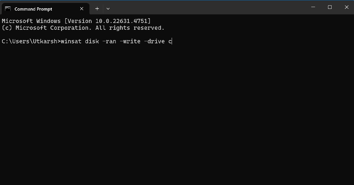 dysk winsat -ran -write -drive [litera przypisana do napędu]