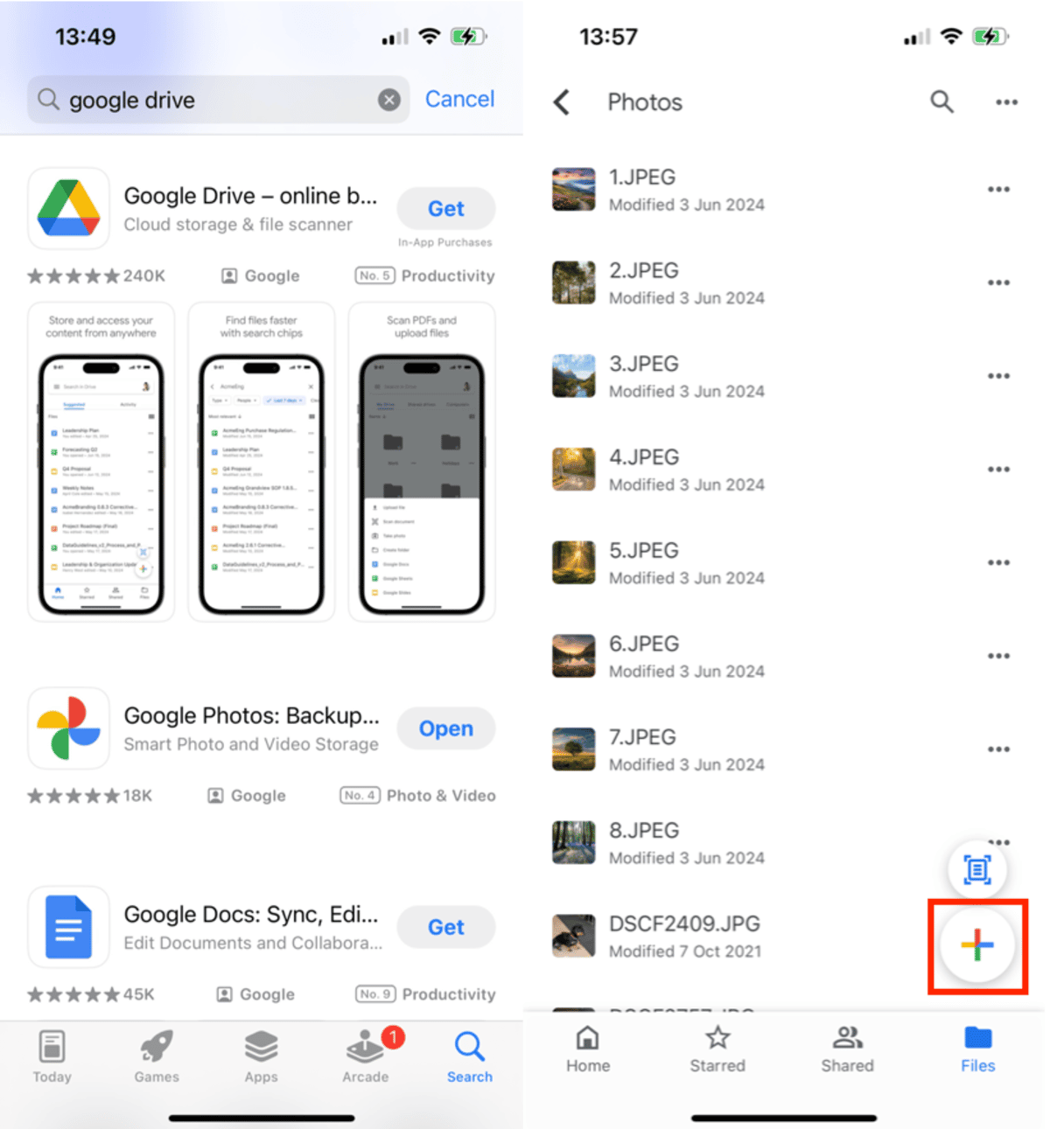 Najpierw musisz przesłać zdjęcia z iPhone'a na Dysk Google. Aby to zrobić, wykonaj następujące kroki: