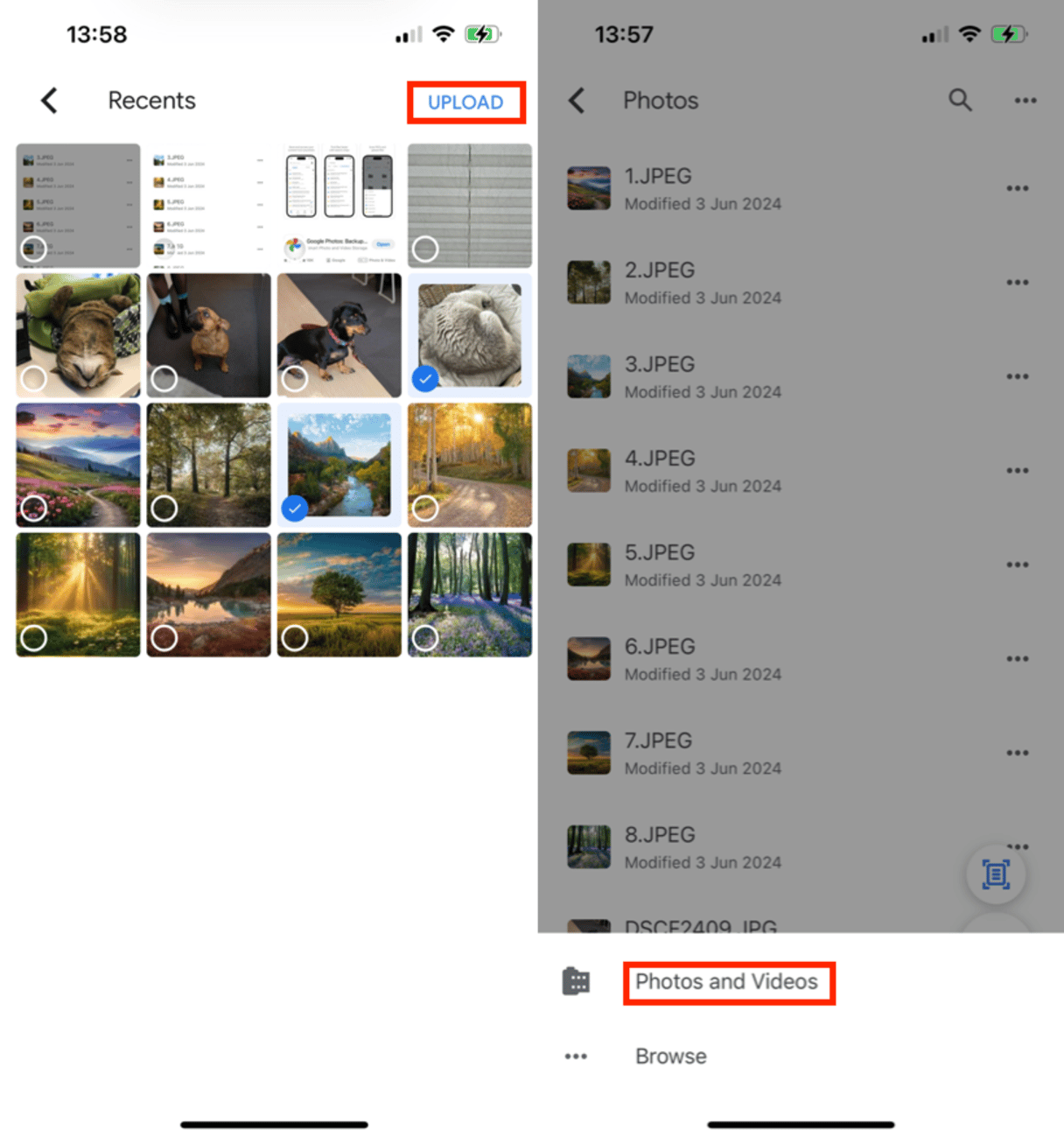 - Wybierz zdjęcia, które chcesz przesłać, i dotknij „Prześlij”, aby rozpocząć proces.