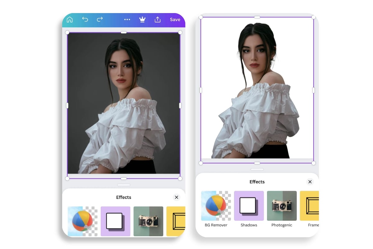 Canva to wszechstronna aplikacja do edycji obrazów, która posiada wiele możliwości. Inteligentne narzędzie do usuwania tła usuwa niechciane tła, automatycznie wykrywając główną osobę lub obiekt. Możesz także użyć narzędzia Pędzel, aby ręcznie dostroić obraz.