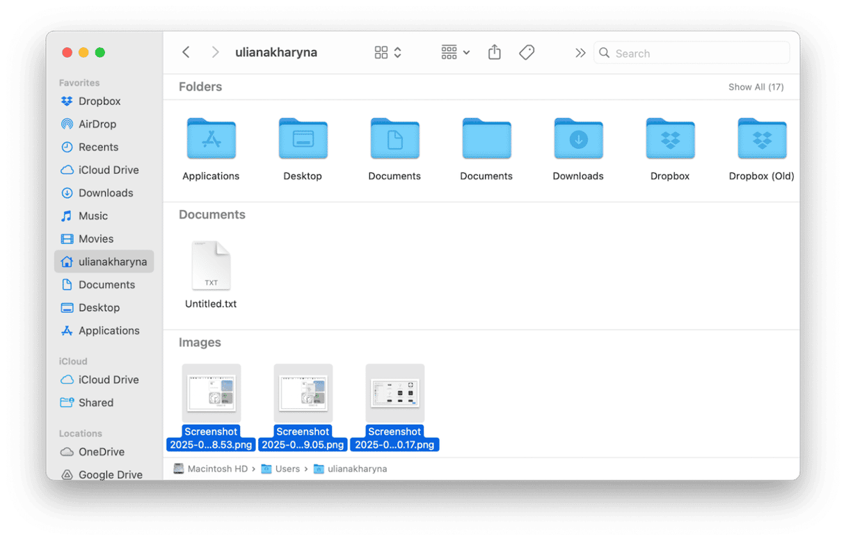 Jak widać, skutecznym sposobem na zwolnienie miejsca jest pozbycie się plików, których nie otwierałeś od dłuższego czasu i zarchiwizowanie tych, które zajmują najwięcej miejsca. Problem polega na identyfikacji tych plików. Czy naprawdę masz czas na przeglądanie wszystkich plików na dysku startowym, sprawdzanie rozmiarów plików i dat ostatniej modyfikacji? Na szczęście istnieje znacznie łatwiejszy sposób na znalezienie tych plików — skorzystaj z funkcji Moje bałagany w CleanMyMac. Posiada narzędzie o nazwie Duże i stare pliki, które po zeskanowaniu dysku startowego wyświetla listę wszystkich tych plików. Możesz następnie posortować je według rozmiaru lub daty i zaznaczyć te, które chcesz usunąć (pamiętaj, aby zrobić kopię na dysku zewnętrznym, jeśli nie chcesz ich stracić). Może także identyfikować podobne obrazy i zduplikowane pliki.