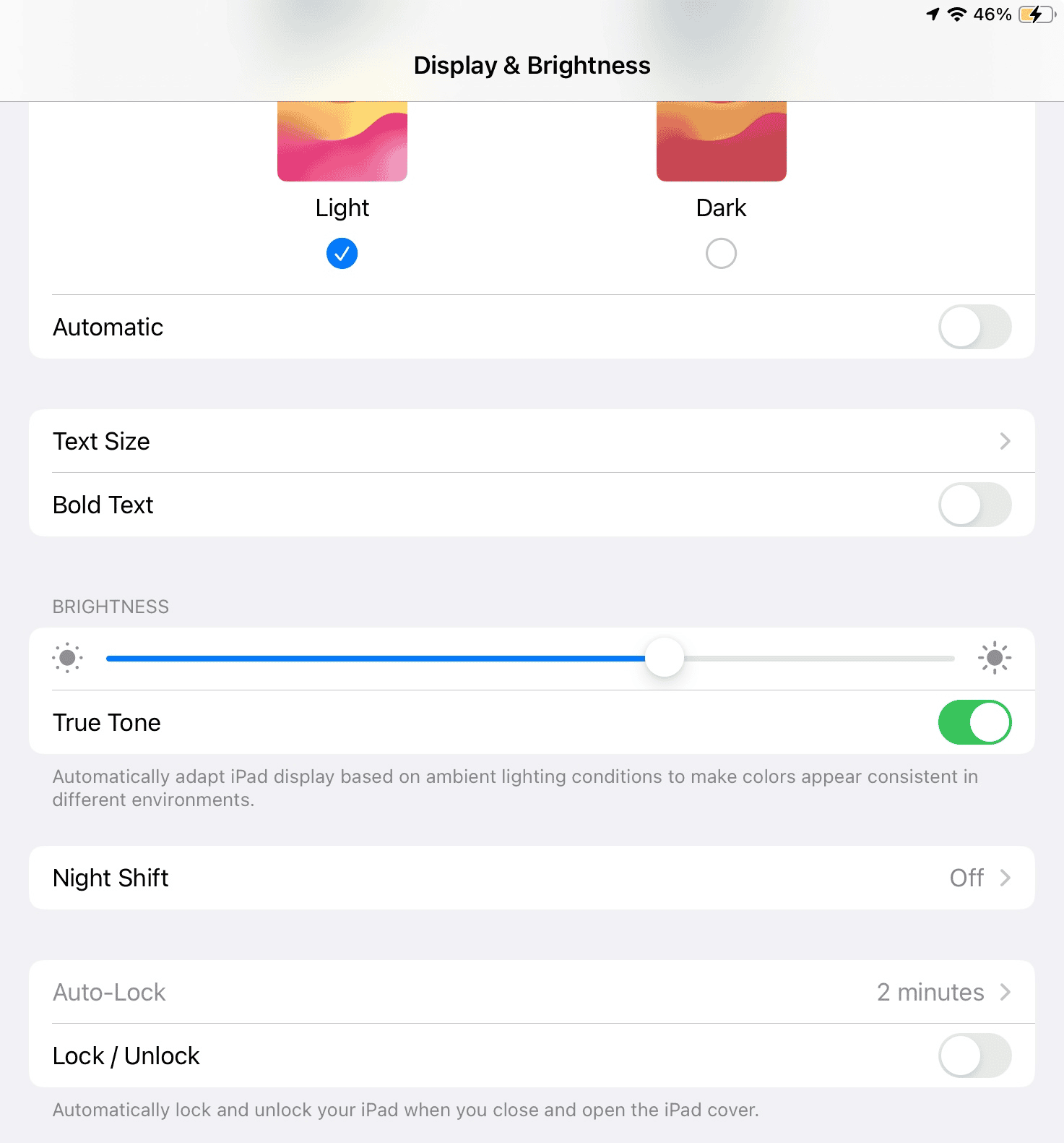 W ramachWyświetlacz i jasnośćustawienia, dotknijAutomatyczna blokada. Tutaj możesz ustawić czas, po którym ekran iPada wyłączy się i zablokuje. Dostępne opcje obejmują zazwyczaj od 30 sekund do 5 minut. Wybranie opcji „Nigdy” spowoduje, że ekran pozostanie włączony do czasu ręcznego zablokowania, ale może to spowodować szybsze wyczerpanie baterii.
