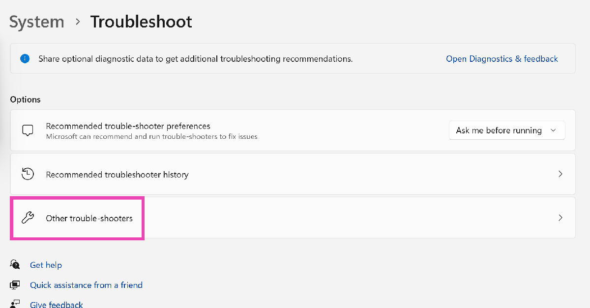 Krok 3:KliknijInne narzędzia do rozwiązywania problemów.