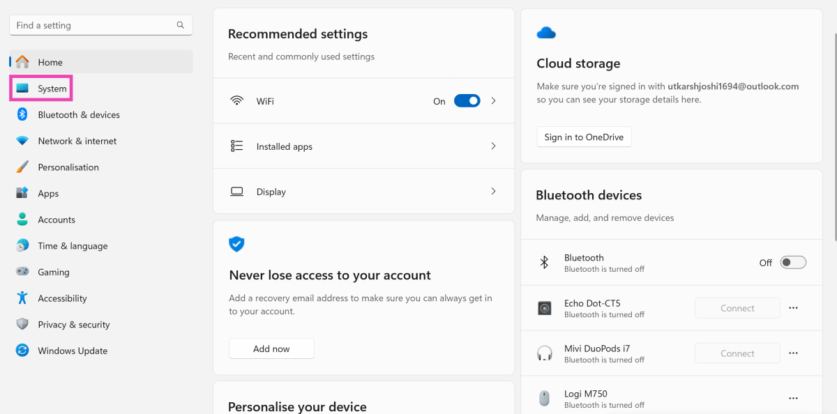 Krok 1:Idź doUstawieniai przełącz się naSystempatka.
