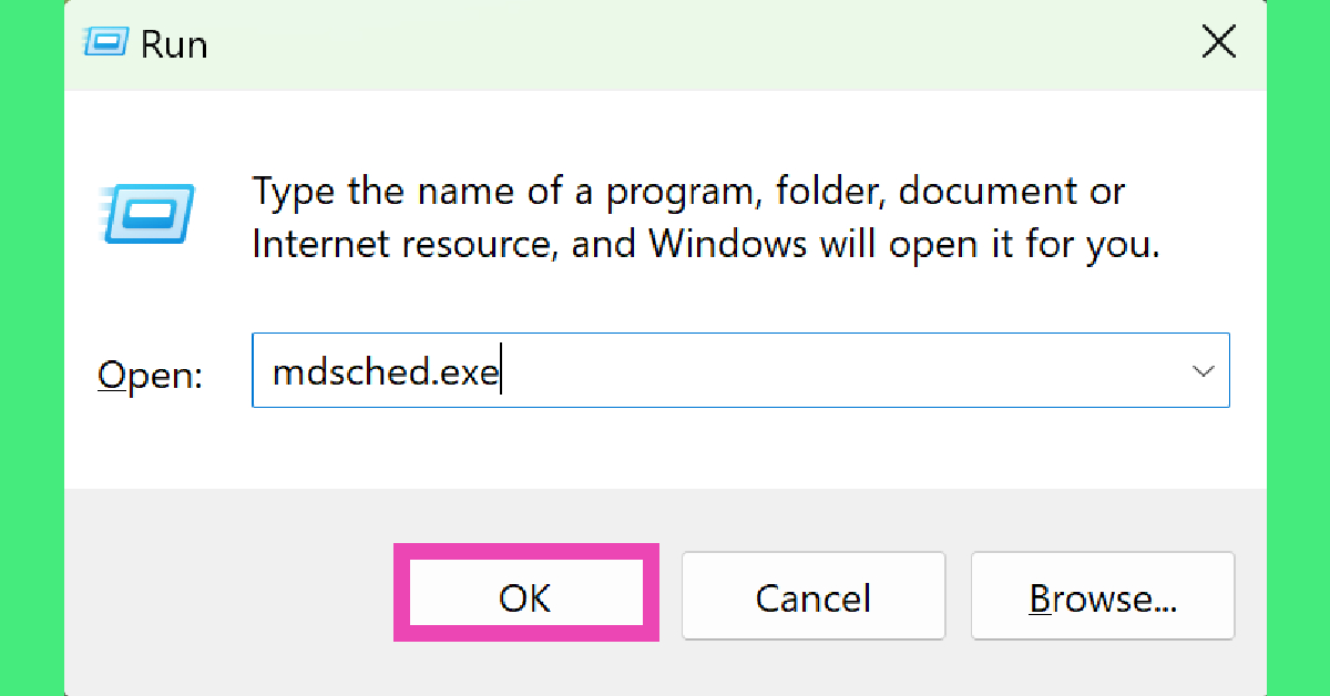 Krok 2:Wpisz mdsched.exe i naciśnijWchodzić.