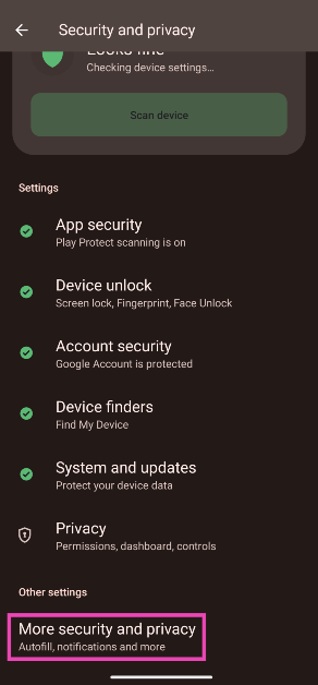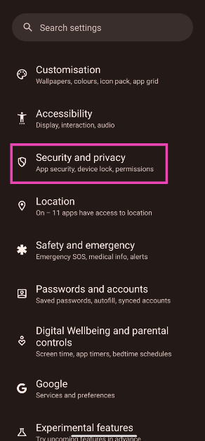 Krok 1:Idź doUstawieniai wybierzBezpieczeństwo i prywatność.