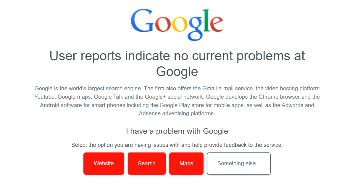 Przejdź do Downdetector.in i wyszukaj Google. Jeśli zauważysz gwałtowny wzrost liczby raportów użytkowników, oznacza to, że usługa nie działa i wystąpiła awaria serwera.
