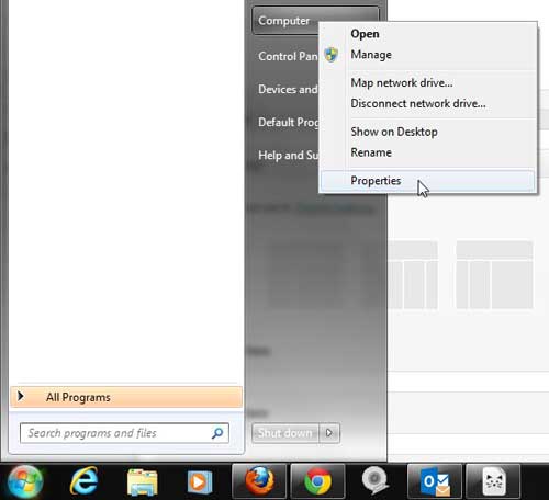 Kliknij przycisk StartKrok 2: Kliknij prawym przyciskiem myszyKomputeropcję, a następnie kliknijWłaściwości.