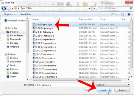 Krok 4: Przejdź do pliku, który chcesz dołączyć do wiadomości e-mail, kliknij go raz, aby go zaznaczyć, a następnie kliknijWstawićprzycisk w dolnej części okna.