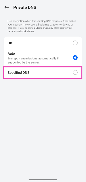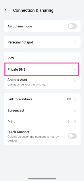 Krok 2:KliknijPrywatny DNS.